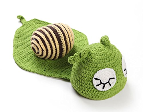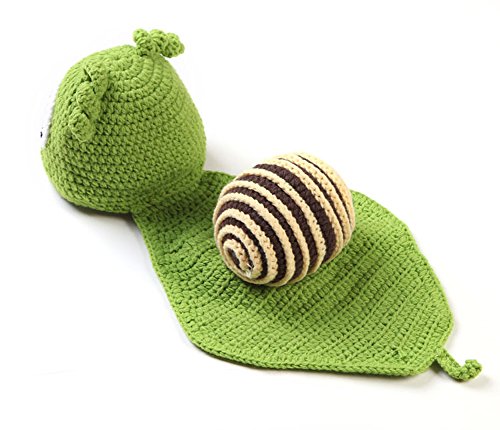 -. Binding : Apparel -. Brand : Yonger -. ClothingSize : One Size -. Color : Green -. Department : baby-boys -. EAN : 0600223541436 -. Feature : 100% brand new and high quality. / Soft cute Cap for both boys and girls / Soft and comfortable hat for baby / Makes a perfect baby gift / Ears stay covered for added warmth and protection in this adorable cap -. Model : LSF000241 -. ProductGroup : Apparel -. ProductTypeName : HAT -. Size : One Size -. Title : Yonger Newborn Photography Props Snail Shape Handmade Crochet Knit Hats+Clothing -. UPC : 600223541436