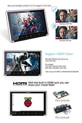 -. Feature : 10.1 inch screen, 1024 * 600 high resolution. The latest European style / Support more mainstream video formats, 80% more than other products of video formats, support 1080P / The whole common stand more stable solution to your model matching problem. / More stable quality, regardless of the process of moving or long play. / Taiwan chip, Taiwan motherboard design.