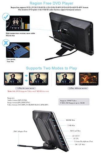 -. Title : Headrest DVD Player YUNSHANGAUTO 10.1 Inch HD 1080P 30Fps Digital TFT LCD Screen touch button Car Monitor with HDMI Port and Remote Control Support CPRM