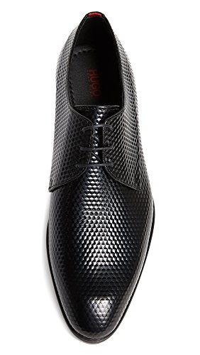 Product DescriptionGive yourself a reason to look forward to Monday. Combining a classic profile with allover geometric embossing, these HUGO derbies are a bar-raising workday staple.0