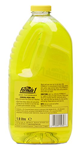 Studio : Formula 1 ReleaseDate : 2011-10-28 Publisher : Formula 1 Binding : Automotive Product Description Carnauba Wash and Wax gives pure Carnauba wax shine as it washes. Rich foam deep cleans bugs, dirt, tar and road grime. Carnauba Wax offers water-beading protection to all paint finishes. Keeps paint shiny and protected between waxing's. Will not harm nor dull paint finish like liquid or powder household detergents. 0