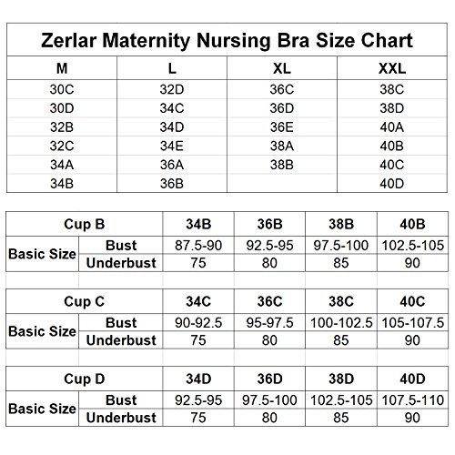 Binding : Apparel Product Description Zerlar Breatfeeding Maternity Bra Nursing Bra for Breast Pumping Hands Free Features: Material: 92% Nylon 8% Spandex; 1. Color: Apricot; Updated Version Breathable Nursing Bra for Breast Pumping Hands Free; 2. No underwire Removable pads; Easy to use, very soft and comfortable; Hook Eye closure; 3. Nursing clips can be removed from both sides to help make breastfeeding easily from one side and pump breastmilk from the other side; 4. Adjustable Shoulder Straps With Clip Closure For Easy Cup Access; 5. Breathable, ribbed gore stretches to accomodate the normal bust size fluctuations nursing moms experience; - Zerlar Women's Maternity Breastfeeding Seamless Nursing Bra soft no underwire padded push up bra is Comfortable to wear, and virtually invisible under clothing. A designs that melts onto and molds to your body, supporting your unique shape in a uniquely perfect way. To help you select more suitable maternity breastfeeding nursing bra, please check the size guide: Size Chart: Size: M; Fit for 30C,30D,32B,32C,34A,34B; Size: L; Fit for 32D,34C,34D,34E,36A,36B; Size: XL; Fit for 36C,36D,36E,38A,38B; Size: XXL; Fit for 38C,38D,40A,40B,40C,40D; Package Including: 1 x Zerlar Nursing Maternity Bra(Updated Version); Zerlar: Women, Fashion and Beauty. "ZERLAR" Trademark No.: 86314155 100% Brand New item from Zerlar, Free Shipping by USPS from Hong Kong; Hope you can get the best service from Zerlar Store. 0