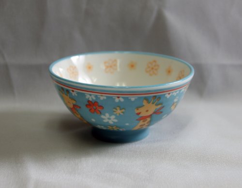 Kotobuki Children's Baby Blue Ceramic Giraffe Rice Bowl, Set of 2