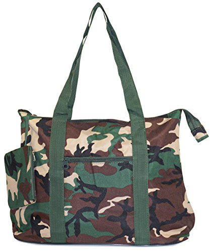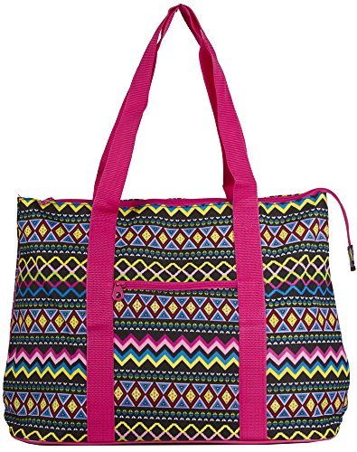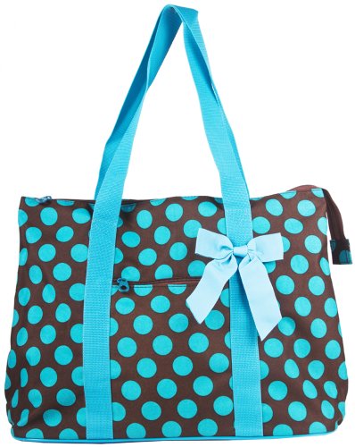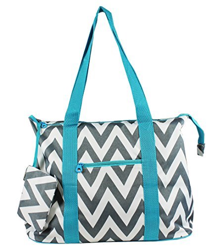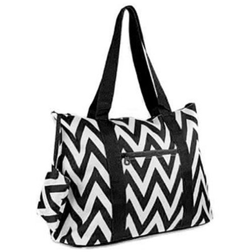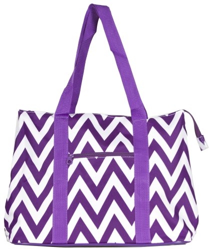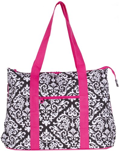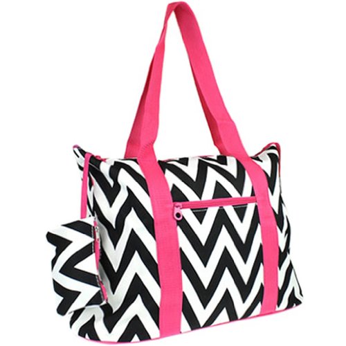 The possibilities are endless with this fabulous oversized tote bag. Throw it over your shoulder to take shopping or to the gym. Use it as carryon luggage for the chic jetsetter or a diaper bag for the fashionable mom on the go. In a fun designer print, it makes an ideal overnight bag for slumber parties! Cute design makes it an ideal option for a gear bag for cheer squads or dance teams! Makes a great school bag and can handle text books and binders because it's made out of durable microfiber and has sturdy straps. Keep smaller, easy to lose items close at hand with the interior zipper pocket. This light weight weekender bag is lined with linen for easy cleaning. This bag rests steadily on metal feet to keep it up off the floor and clean! Features a top zipper closure and an exterior zipper pocket for added convenience! Comes with a matching coin purse too!Feature