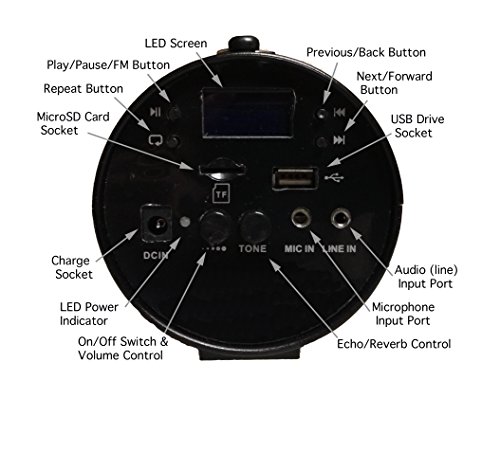 Small Super Powerful Voice Amplifier/Speaker Mp3 player & FM Radio. Size is 3.7in diameter x 5.8in length