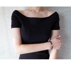 デコルテが綺麗に見えるオフショルダーデザインは、着るだけでキマる1枚♪
