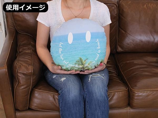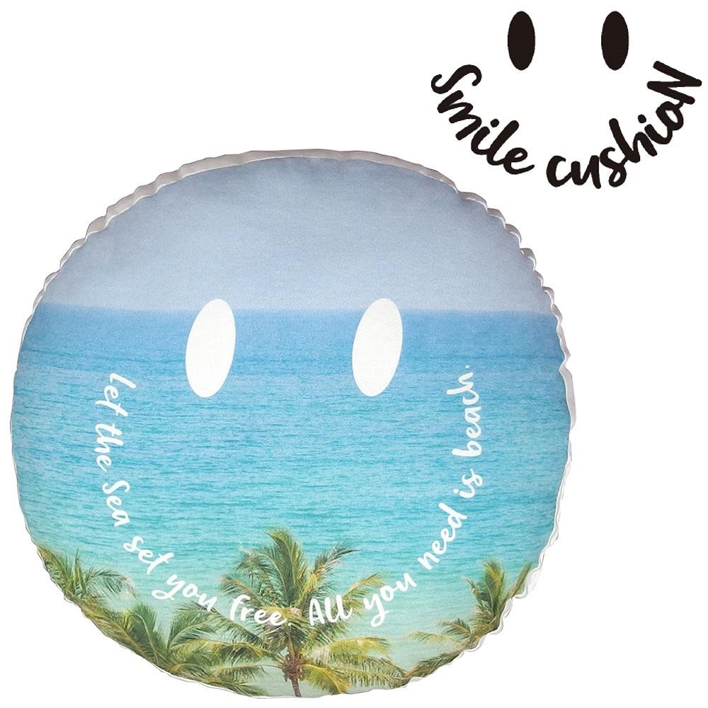 スマイルとビーチの景色が一緒になったクッションです。カバーの取り外しはできません。