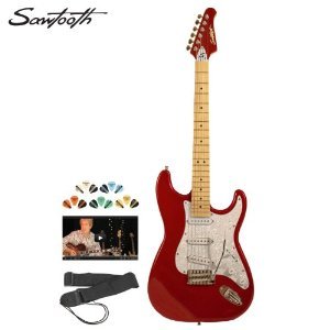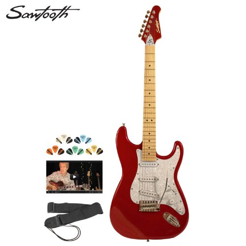 상품명: Sawtooth ST-ES-CARP-KIT-1 Candy Apple Red 전기 기타 with Pearl White Pickguard - Includes Strap, Picks