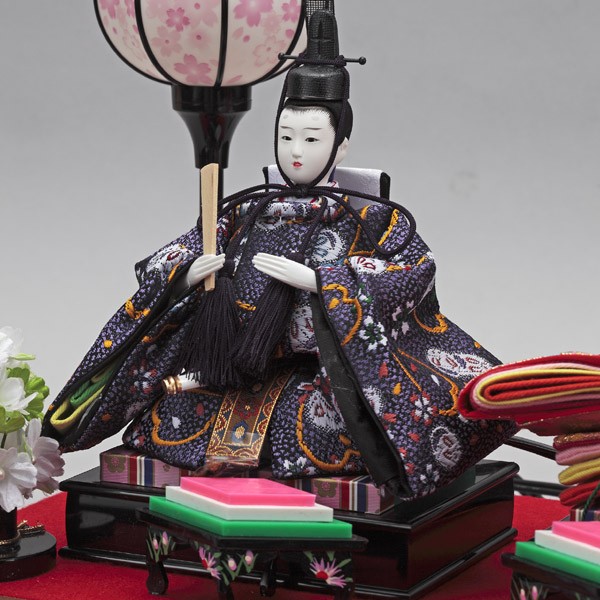 ・台座・屏風等には落ち着いた色目の雛人形セット。