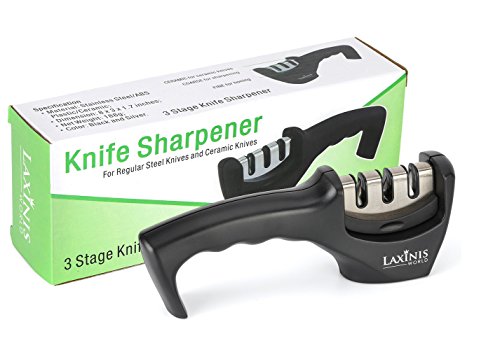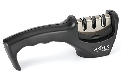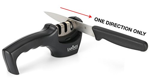 JUST 3 – 5 STROKES is making Your Knives Sharper than Ever – the amazing LAXINIS WORLD Knife Sharpener has been designed to sharpen any dull or blunt kitchen knife into as razor sharp as you had it when new, sometimes even sharper! SIMPLE AND FAST!