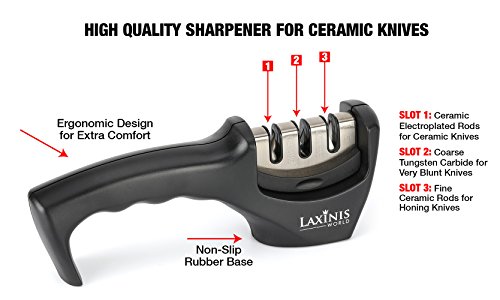 LAXINIS WORLD Best Easy Knife Sharpener, Diamond Coated, Professional Knife Sharpening System for all Kitchen Knives, Steel, Ceramic Knives & Blades | 3 Rod Sharpeners, with Slip-resistant Rubber Feet