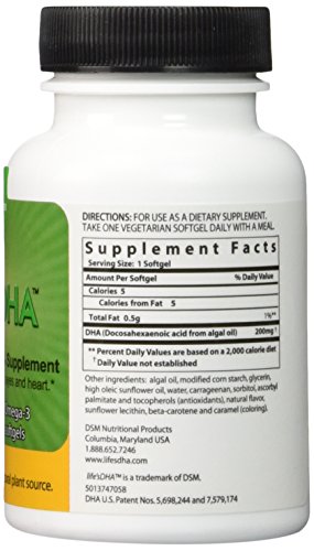 life'sDHATM All-Vegetarian DHA Supplement: A nutritionally complete diet includes omega-3s such as life'sDHATM. DHA (docosahexaenoic acid), an omega-3 fatty acid, is a major structural fatty acid in the brain and eyes, and a key component of the heart. DHA is the only omega-3 that has been shown to support brain, eye and heart health throughout every stage of life. *Yet the typical American diet usually falls short of recommended DHA levels. life'sDHATM vegetarian softgels are encapsulated in a vegetarian capsule making them 100% vegetarian. Unlike other sources of DHA omega-3, life'sDHATM comes from a vegetarian source (algae), grown in an FDA-inspected facility. Because life'sDHATM is not from fish, there is no worry of ocean-borne contaminants. Inform your health care professional about this product. Keep in a cool dry place with cap tightly closed. Keep out of reach of children. Other ingredients: Algal oil, modified corn starch, glycerin, high oleic sunflower oil, water, carrageenan, sorbitol, ascorbyl palmitate and tocopherols (antioxidants), natural flavor, sunflower lecithin, beta-carotene and caramel (coloring). *These statements have not been evaluated by the Food and Drug Administration. This product is not intended to diagnose, treat, cure or prevent any disease. All-Vegetarian softgel - 200mgFeature