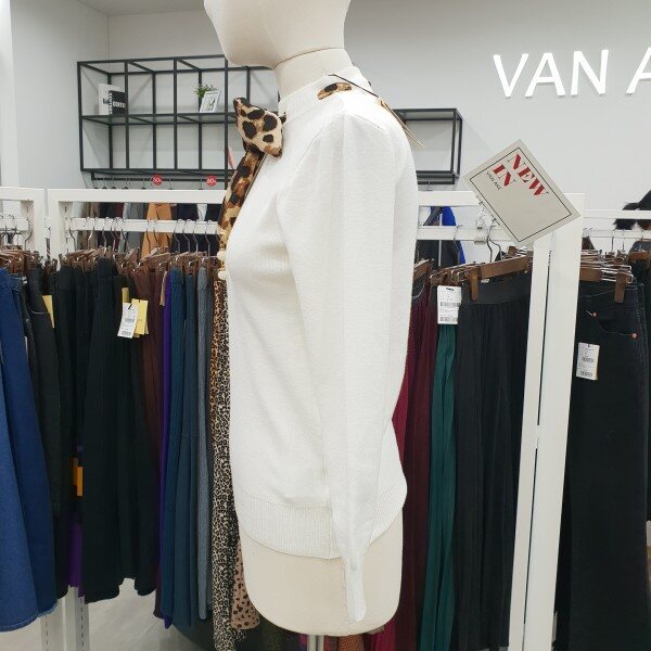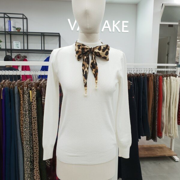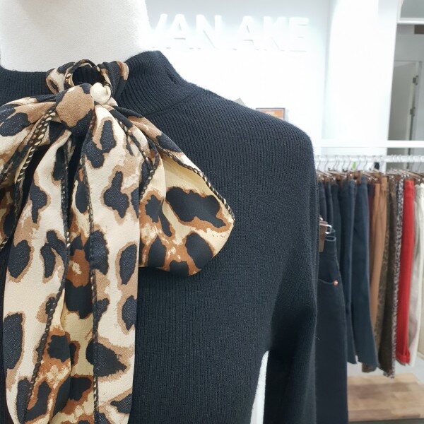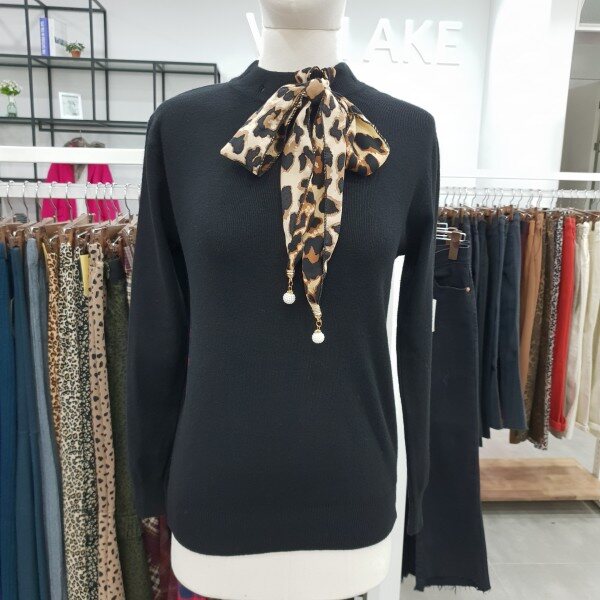 호피스카프장식으로 포인트준 유니크한 라운드니트스커트나 코트안에 이너로 자주입어질 아이템