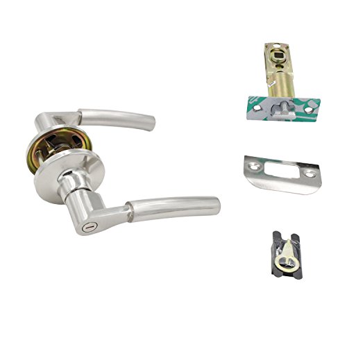 The ALEKO levers design is an attractive addition to any home. The crisp, clean appearance of the Nickel finish adds to the overall look of the product and brings a modern feel. This privacy lever is best used in interior bed and bath applications where privacy is required. The lever is locked or unlocked by turn button inside. The outside lever can be unlocked by an emergency key. Features: For use on interior doors where a privacy locking function is required, such as a bedroom or bathroom. Features an adjustable latch to fit all standard door preparations. Easily installs in minutes with just a screwdriver Zinc Alloy lever on Iron Rosette. Package includes: 1 x Privacy Door Lever with all fixings Thick Handle Fits door thickness of 1-3/8 in. to 1-3/4 in.Feature