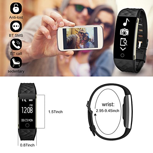 -. Feature : ✅HEART RATE MONITOR - The fitness tracker can be used alone to track your daily heart rate, helping to better adjust physical state while exercising. Green light will scan your pulse to get a real time data. The highest and lowest heart rate can be setup in APP and it will alert you if you get the warning line. Raise your hand and the screen lights up. Convenient and practical! / ✅WATERPROOOF & SPORT TRACKER - The fitness watch is IP67 waterproof to support actions like swimming, hand-washing and taking a cold shower. Hot water will crash the watch. The GPS sport tracker records your movement of walking, running and riding, show the time and steps you take and the calorie burned. Bluetooth 4.0 allows the range of 10m to induct. You will know yourself very well and keep moving! / ✅MULTI-FUNCTIONAL WATCH - SurP.R.Ising functions of the tracker are waiting for being exploring! It can monitor and analyze your sleep quality from the data of sleep time and deep sleep time. The alarm clock will vibrate instead of waking up your partner. Also it can remind you of stretching yourself after a long time working, warn you to answer a phone or message. A remote to shoot pictures & videos, play music and find your phone are all available. / ✅HIGH PRECISION QUALITY - Fashion design of the tracker brings good mood to start a new day! A functional key to control all the functions. Soft strap with buckles is non slip and comfortable. Large OLED screen (0.87*1.57in) shows clear icons and feels great. USB charging port hiding in the strap is convenient to charge. 9-day long standby time and 1-4 days using time makes the tracker more durable. Light enough to be with you all the time! / ✅WIDELY COMPATIBILY - The fitness tracker works for the smartphones which is Android 4.3 and above, IOS 8.0 and above, with BT 4.0. Download the App by scanning the QR code on the manual or search the app "smart wristband 2" from Google play store or App store. You can even see the calorie burned of indoor sports like sit-ups and rope skipping. Package includes 1 x Fitness Tracker and 1 x User Manual. 24-Month Warranty and lifetime customer service.