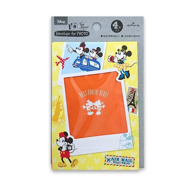 | カメラを持ったミッキーとミニーのイラストが可愛い写真用封筒です。窓あき仕様なので中の写真が見えます。封筒1枚あたりにL判サイズの写真が20枚入ります。 |