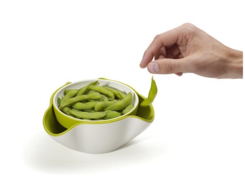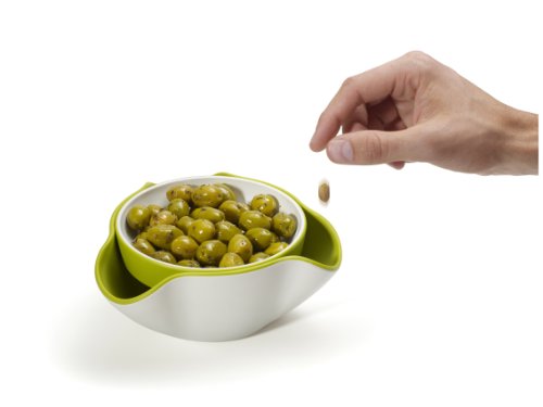 - Feature : Cleverly designed snack dish in stone perfect for serving shelled nuts, olives and endamame beans / Removable top dish sits in larger bottom dish with 3 wide, open lips / Allows you to hide shells and pits out of sight and out of the way / Can also be used as two separate dishes / Made of durable melamine; dishwasher safe