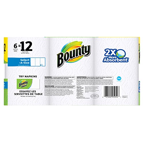 -. Feature : 2X more absorbent,* so you can use less (*Vs. the Custom-Size-It brand in the U.S. and the Premium Green Leaf Towel in Canada.) / The Quicker Picker Upper (Vs. leading ordinary brand) / 6 Double Rolls = 12 Regular Rolls / Select-A-Size White Sheets (126 sheets per roll) / If you love Bounty paper towels, try Bounty Quilted Napkins