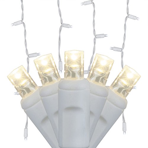 Holiday Lighting Outlet Commercial Grade Icicle Christmas Light String, 120-Count 5MM Wide Angle LED Lights, Sun Warm White, 4" Spacing Between Drops, 3" and 6" Icicle Drops, 16.4 Feet, UL Listed.