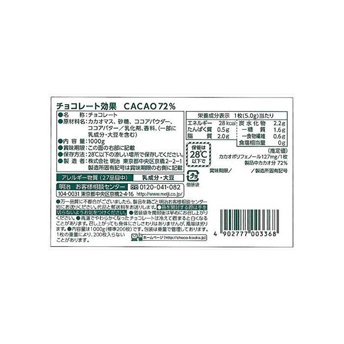 원본상품명: 明治 チョコレト果 カカオ72% 大容量ボックス 1kg