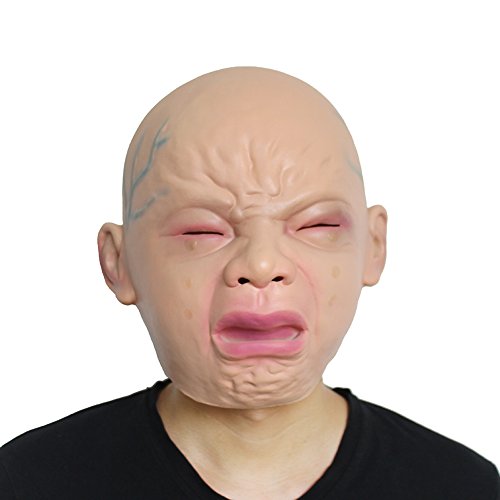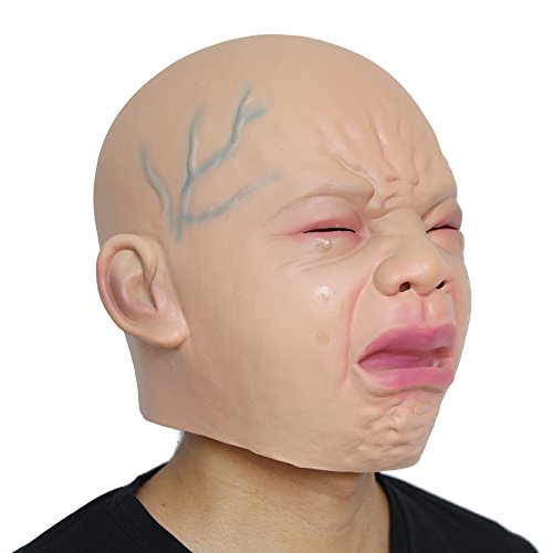 Giant crying baby head mask is just amazing ,creepy big blue engorged blood veined bareheaded but hilarious enough to freak out others!