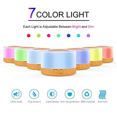 7 COLOR LED LIGHT AND TIMER SETTING: You can choose among 7 colors between two mode, steady on/changing color. Each color is adjustable between bright and dim. 4 timer- 10S intermittent/ 2H/ 4H/ Continuous modes.Get extra peace of mind with the built-in water protection that shut the oil diffuser off when the water is low.