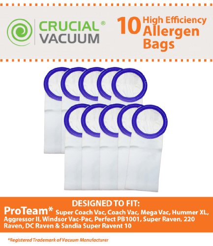 EASY TO INSTALL so you can get back to cleaning as soon as possible! Simply remove your old bag, toss it, and put this brand new one in it's place! Fits ProTeam Aggressor II, CoachVac, Super CoachVac, Hummer XL, MegaVac, Perfect PB1001, Raven, Raven XP-3, 220 Raven, DC Raven, Raven 10, Super Raven, Sandia Super, Whisper, Whisper XP-3, & Windsor Vac-Pac Vacuums.