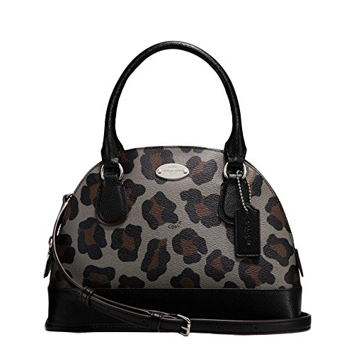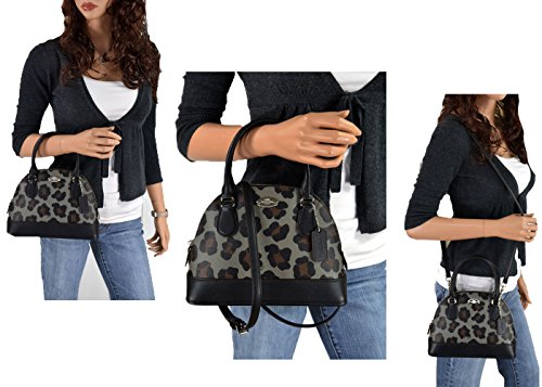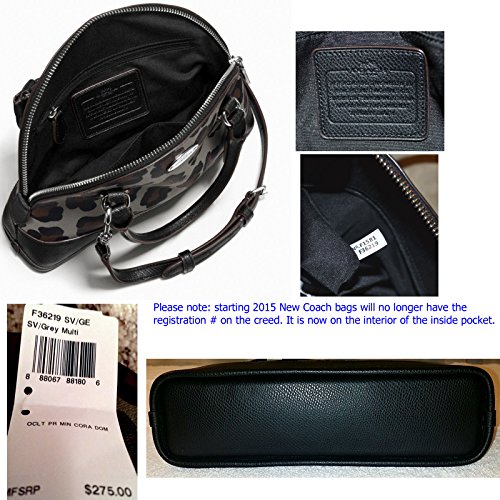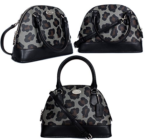 -. Brand : Coach -. Color : Black Multicolor -. Department : womens -. EAN : 0018594045970 -. Feature : 9" Across bottom and 7" Across top (L) x 7" (H) x 3"(W). This is a very small Sweet Mini bag. / Absolutely Adorable! Beautiful Coach PVC Coated Signature Ocelot Leopard texture Print in Stunning Black, Dark Grey and Dark Brown colors. / Interior: top zipper closure, inside wall zipper pocket and one multifunctional open pocket. Black Leather Trim. / Exterior: Silvertone hardware, double leather handles 4" drop and attachable longer strap for shoulder & Crossbody wear! with an adjustable black leather crossgrain buckle strap 25" drop. / ~*~ New with Coach Store Tags, Coach care card and copy of Coach Store Receipt. (dustbag not included) Wrapped in Coach tissue paper. ~*~ -. ProductGroup : Shoes -. ProductTypeName : HANDBAG -. Title : New Authentic COACH Leopard Small Mini Domed Black Multicolor Ocelot Satchel Crossbody Bag -. UPC : 018594045970