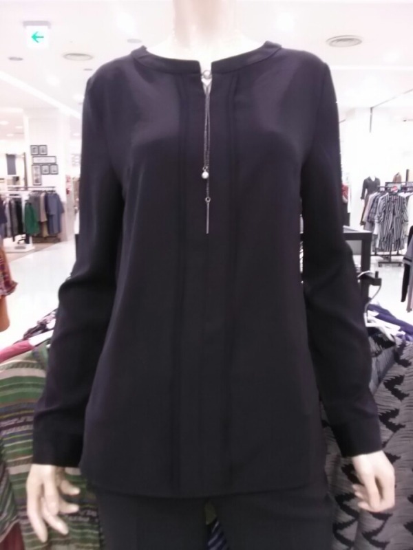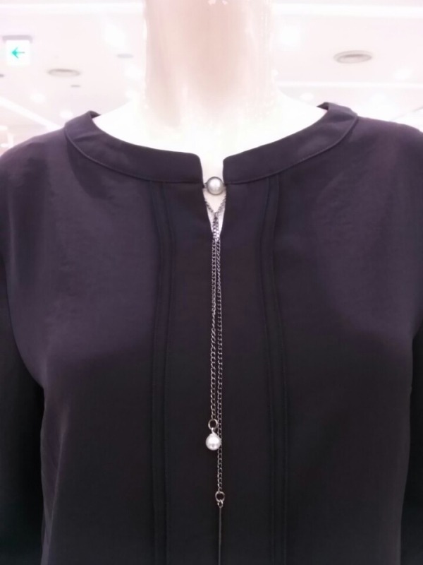 네크리스 장식의 백단추 솔리드 블라우스~