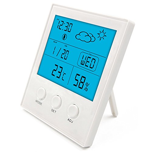 -. Feature : AngLinkデジタル温湿度計は表示パネルが大きく、ひと目でわかるデジタル温湿度計です。 / 最高及び最低温度の時間の記憶機能がある,ボタンひとつで最高/最低の温度・湿度を表示でき ,温度、湿度レベルのアイコンで部屋の状況を把握できます。人間だけでなく、ペットや観葉植物の環境管理にも便利です。 / 「3WAYタイプ」直立、置き用、壁掛け(置き用スタンド+壁掛け用フック穴つきて)の3WAYタイプどこでもおけます。単四電池(1.5V)が含まれます。 / 「多機能」時間、日付け、曜日等の機能も付きます。リビング、寝室、子供部屋、書斎、キッチン、洗面所、ペットのケージなど、色々な場所で活用できます。 / 使用範囲:温度(-10℃-50℃)、湿度(20% ~ 99% RH)、表示単位:温度(1℃)、湿度(1%RH)  重 さ:137g 包装寸法:93.5×114.5×22mm