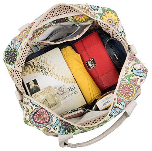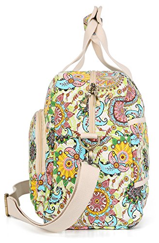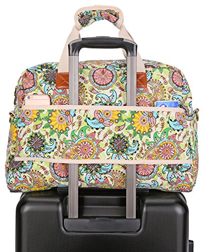 If you plan going traveling or even just going on a day trip,a overnight bag is a lot more convenient.This weekend travel bag proves that a women's practical sense and her fashion sense can go hand-in-hand.This weekender bag is light weight, but fits a ton of stuff. It has multiple compartments to help keep things organized. Easy to carry around and toss up into the overhead bin on your flight! Dimension 18*9*11inch/45*22.5*27.5cm(L*W*H),8.5inch/21cm handle drops,perfect size for a weekend getaway.This overnight bag featured with original floral pattern shows your young girl heart Exterior Features Exterior1*front zipper pocket(can accomodate 14" laptop),2*side pockets,2*backside open pouches.Tons of pockets to hold your cell phone,passport wallet,water bottle and more.keeping some stuff separate is great,so you can have easy access to those things Interior Features Interior 2*open slots,1*zipper pocket.This over night bag can fit many things you'll need to take care of-whether for clothes,snacks,souvenirs or toiletries bag. Backside Features A suitcase handle strap on the backside,you can attach this travel bag on your wheeled suitcase and set your hand free.With choice of 47" detachable shoulder straps or easy tote carrying handle,this weekend bag is perfect for grab-and-go convenience 0 |