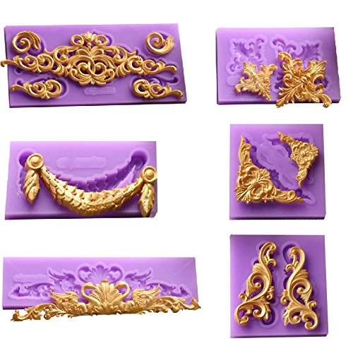 ( 6 in Set)Baroque Style Curlicues Scroll Lace Fondant Silicone Mold for Sugarcraft, Cake Border Decoration, Cupcake Topper, Jewelry, Polymer Clay, Crafting Projects By Palker sky
