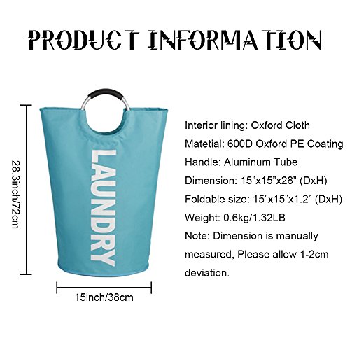 Collapsible Pop Up Laundry Hamper Basket Foldable Heavy Duty College Laundry Bags with Double Round Alloy Handles