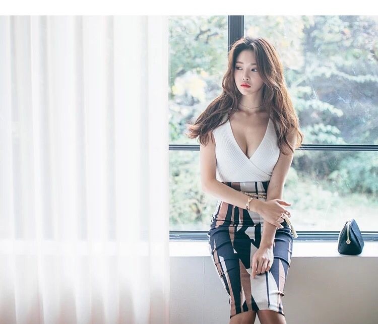 胸元に突き刺さる様なVネックがセクシーながら、色々な場で着回す事が出来るデザインです。