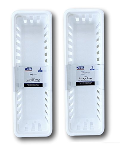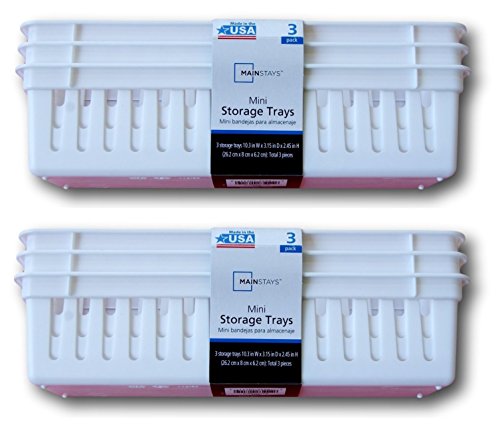 -. Feature : Useful in the kitchen, bathroom, office, or garage. / Each plastic tray measures 10" long X 3" wide X 2 1/2" deep. / Great organizer for small tools, hobby and crafts parts storage. / Model railroaders can use these to protect valuable train cars . / Quantity is 6 Baskets