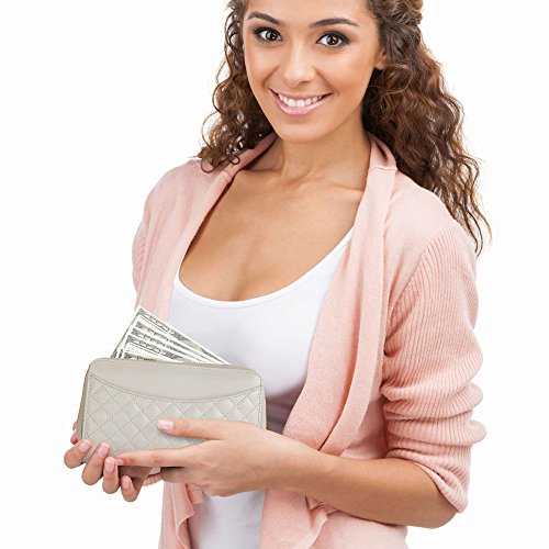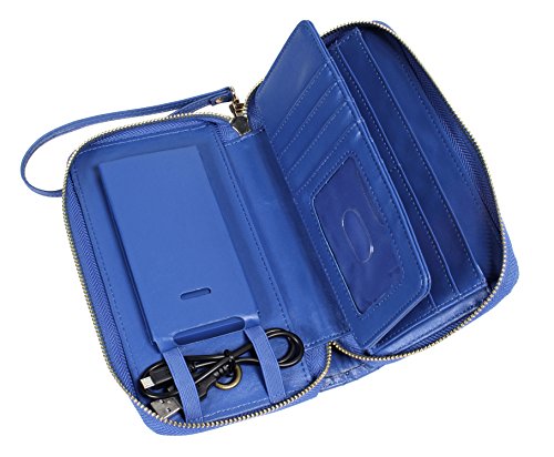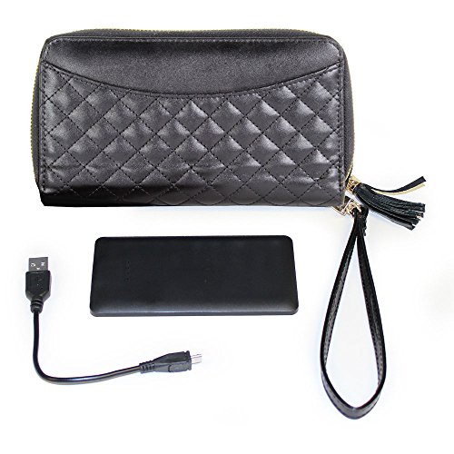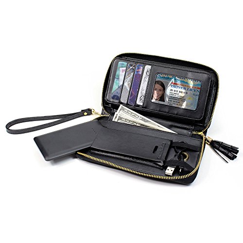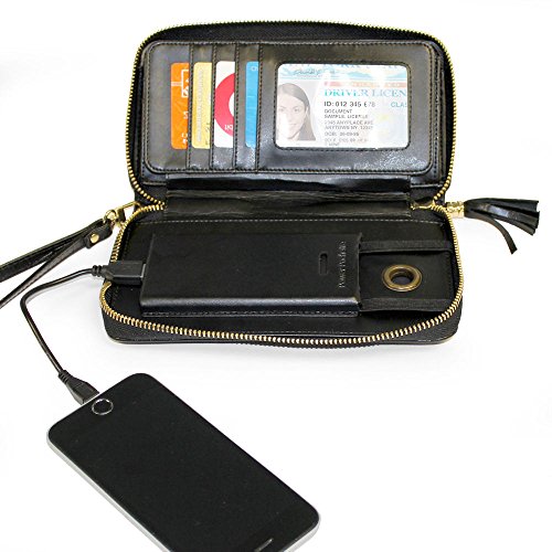 PCT Brands Power Pochette Ladies Clutch Leather Wallet with RFID Protection and Built In 3000mAh Power Bank Charger