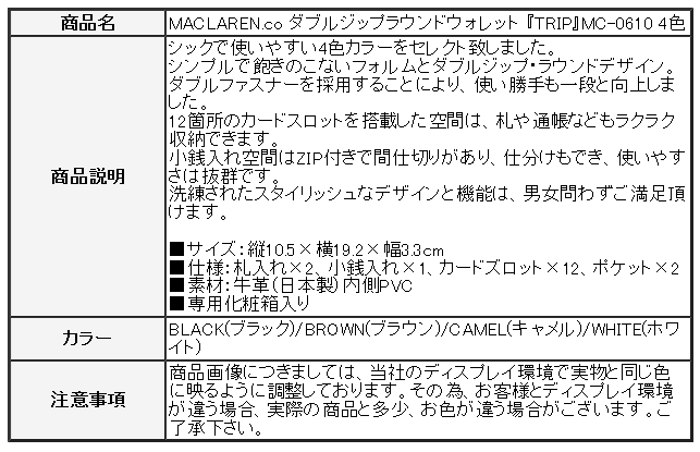 MACLAREN.co ダブルジップラウンドウォレット 『TRIP』MC-0610 4色