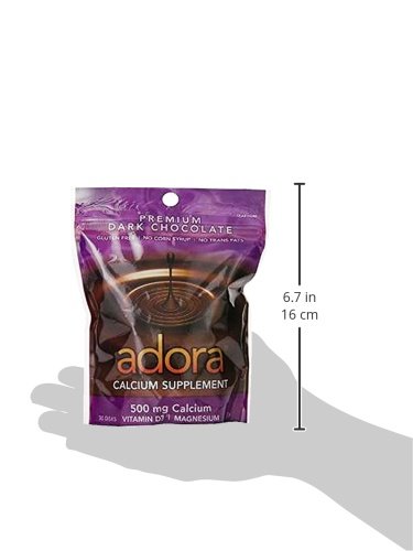 -. Binding : Health and Beauty -. Brand : Adora -. EAN : 0748689301314 -. Feature : Pack of Twelve, 30 Count (Total of 360 Counts) / Organic / Each Adora Calcium Supplement disk delivers 500 mg of calcium, 250 IU of vitamin D3, 40 mg magnesium, and is only 30 calories / Adora Calcium Supplement is certified Kosher by the Orthodox Union, trans fat free, gluten free, and made with delicious, all-natural premium milk chocolate / Our Quality Assurance team oversees all steps in the process and ensures each bag of Adora Calcium Supplement is in compliance with FDA standards for dietary supplements standards -. Label : Adora -. LegalDisclaimer : Actual product packaging and materials may contain more and different information than what is shown on our website. We recommend that you do not rely solely on the information presented and that you always read labels, warnings, and directions before using or consuming a product. Please see our full disclaimer below. -. Manufacturer : Adora -. MPN : 748689301314 -. NumberOfItems : 12 -. PackageQuantity : 12 -. PartNumber : 748689301314 -. ProductGroup : Health and Beauty -. ProductTypeName : HEALTH_PERSONAL_CARE -. Publisher : Adora -. ReleaseDate : 2015-06-22 -. Size : 30 CT -. Studio : Adora -. Title : Adora Calcium Supplement Disk, Organic Dark Chocolate, 30 Count (Pack of 12) -. UPC : 748689301314