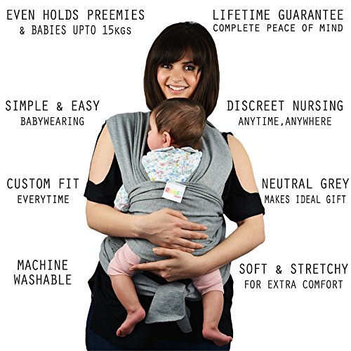 -. Title : Premium Baby Wrap Carrier Original Natural Cotton Baby Slings | Multiple Positions Soft and Lightweight Sling for Newborn Infants from Birth | Grey