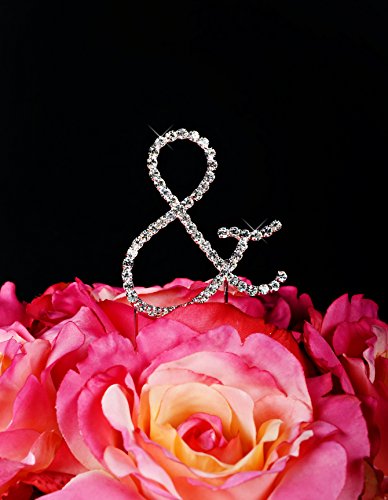 Unik Occasions Simply Elegant Crystal Rhinestone Ampersand Wedding Cake Topper, Silver