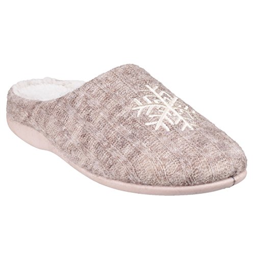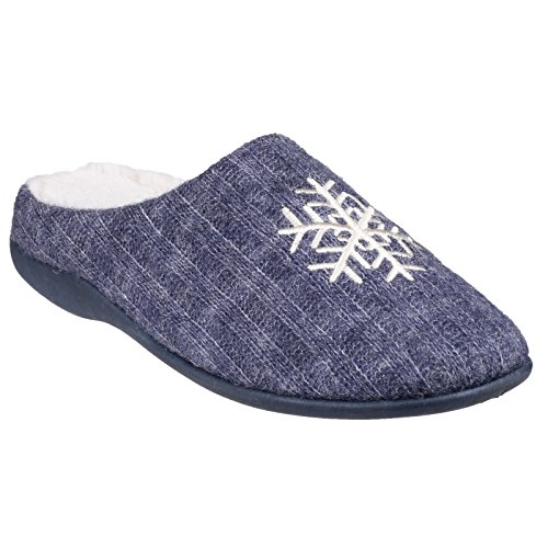 Product DescriptionLadies slip on mules. Luxury padded upper overlaid with soft knitted textile. Beautifully embroidered snowflake decal. Microfibre faux will lining. Lighweight and flexible TPR sole. Textile/Other Materials.0