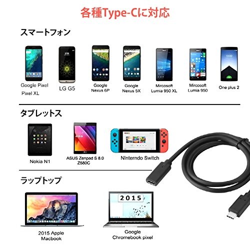 Macbook用USB3.1のType-Cオス to Type-Cメスの延長ケーブルです。 MacBookを利用だけじゃなくて、任天堂スイッチドックやusb-cハブやotgアダプター等の TYPE-C 接続した機器は対応します。