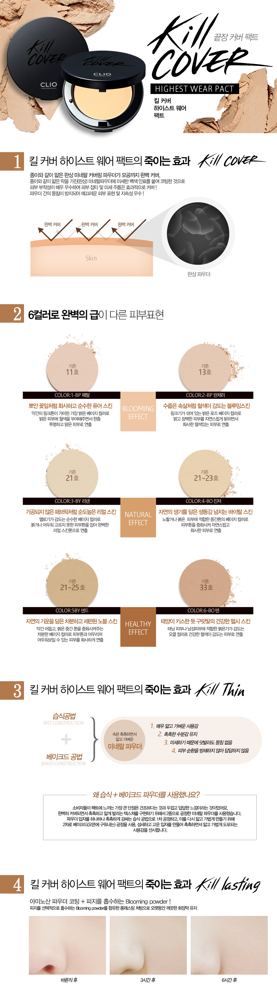 [Features] [Clio] Kill Cover Highest Wear Pact Super thin and light touch. Remains moisturizing hydration.