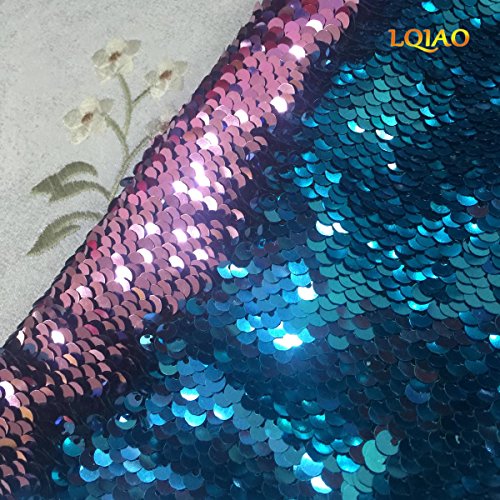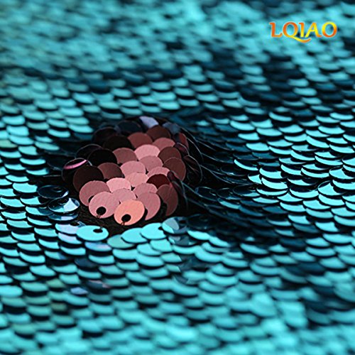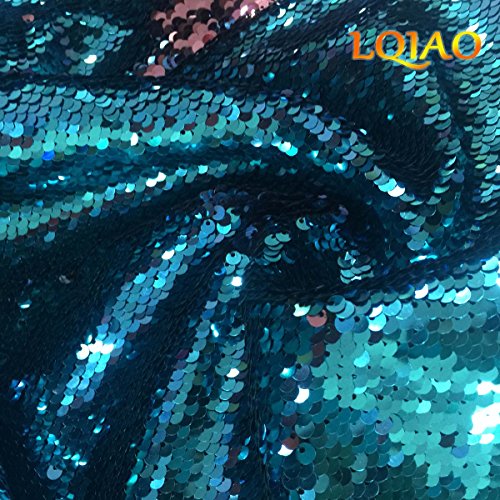 LQIAO New Turquoise Pink Sequin Fabric Mermaid Reversible Sequin Fabric Mesh Sequin Fabric Scale Fish Style Sequin Fabric for Girl Costume Dress/Lady Evening Dress Pillow Cover