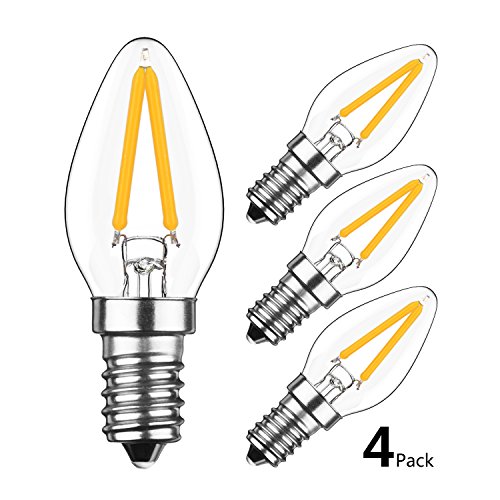 HzSane 2W LED Filament C7 Night Light Bulb, 2700K Warm White 200LM, E12 Candelabra Base Lamp C7 Mini Torpedo Shape, 15W Incandescent Replacement, Refrigerator bulb, Non-dimmable, 4 Pack