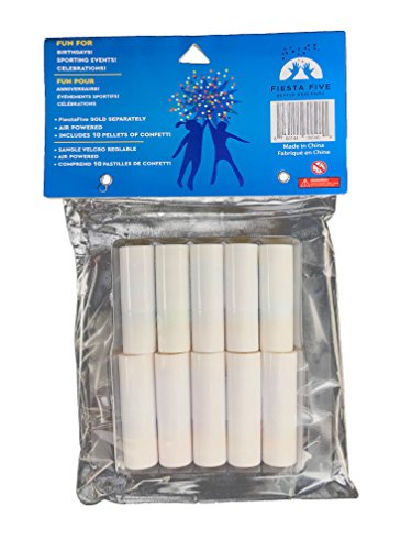 Studio : FiestaFive.com Publisher : FiestaFive.com Binding : Toy Product Description These confetti filled cartridges are the refills for the FiestaFive shooter. You know that feeling when you give the perfect high-five? Multiply it by fireworks! We have all been there before...completely submerged in a pool of celebratory tension when you make direct eye contact with someone who is ready to take that moment to the stars with an epic high five. But, in all your excitement and haste something terrible happens. Someone took their eye off the elbow, or had slippery hands, and what could have been the perfect high five ends in humiliation and sadness, or perhaps even pain and stinging. When we set out to enhance one of the most common forms of celebration known to mankind, our first focus was make it consistently awesome. The FiestaFive gives you that satisfying thunderclap every-time, without hurting your hand. Add to that a shower of colored confetti and it'll be your cheeks that are hurting from smiling so hard! The FiestaFive is the home run your team needed to win the game, it's the jackpot on the slot machine, it's your next viral video, it's sunshine on a rainy day, it's the touchdown in overtime for the win, it's your best friend walking through the door, it's a new personal best, it's the last puzzle piece and the perfect fit, it's what no one expected would happen and everyone loves. Take your celebrations to the next level with reloadable confetti high fives. Every high-five you give and receive will send a blast of shiny confetti up into the air above you. Each FiestaFive shooter comes with six (6) confetti cartridges that can be reloaded for your next epic high-five with ease. You become the party and everyone will want to high five you and try it out. Your chances of being 'left hanging' are negative. The FiestaFive is guaranteed to bring smiles to everyone around you and create a hilarious, exciting, dramatic high five celebration as confetti rains down from above. Kids love the FiestaFive and can't get enough! 0