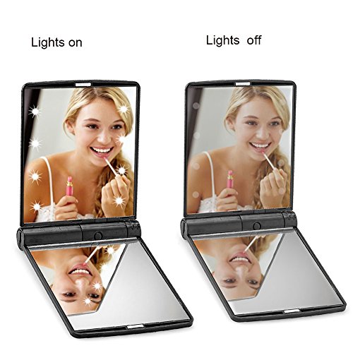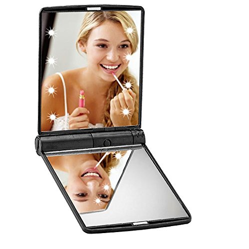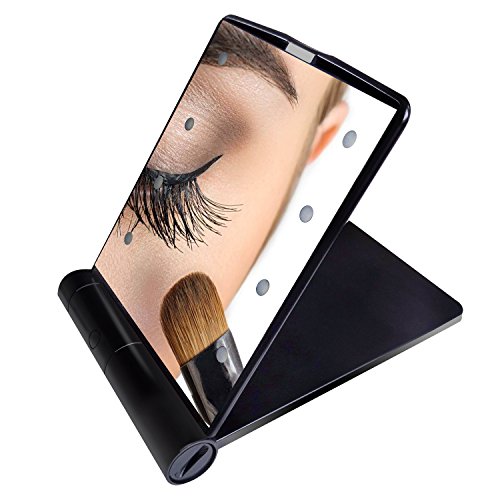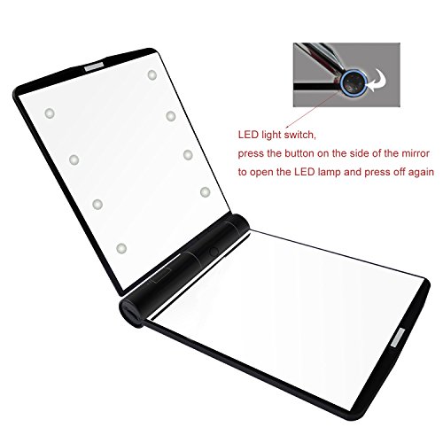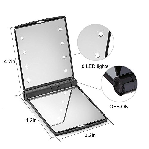 - [Portable LED makeup mirror]:Build-in 8 dimmable led lights,Soft eye LED lights,led lighted makeup mirror can brighten your beauty even under poorly light.without fear of the dark.