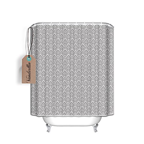 Extra Long Shower Curtain Fabric Shower Curtains Bathroom Curtains Gray Shower Curtain Damask 84"