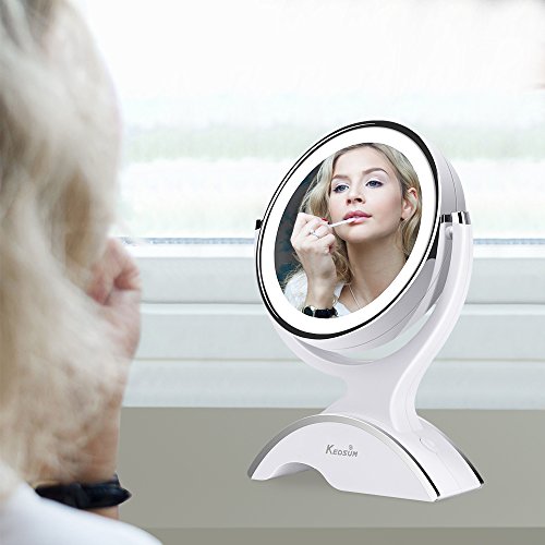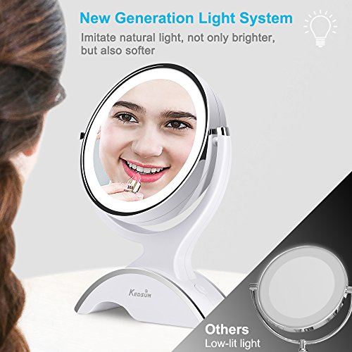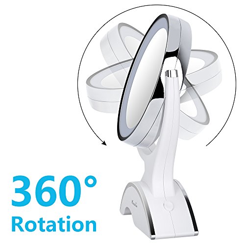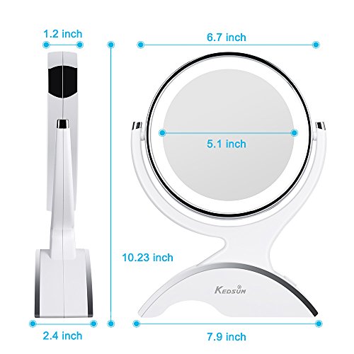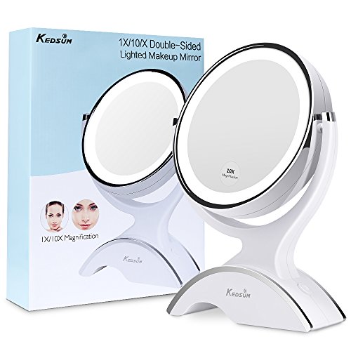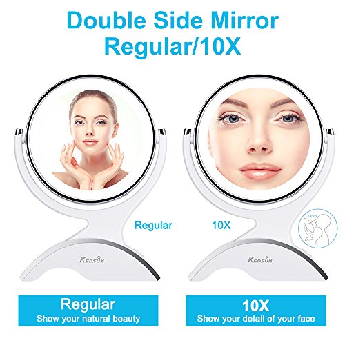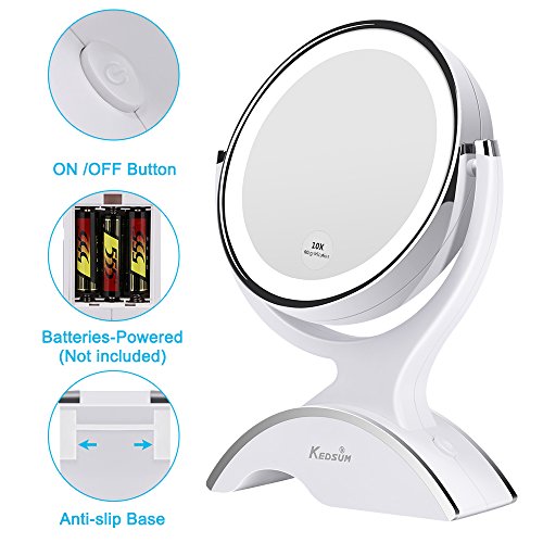 KEDSUM 6.7 inch 1X/10X Double-sided Lighted Makeup Mirror, 360 Degree Swivel Vanity Mirror, Cosmetic Regular/Magnifying Mirror with lights, Batteries...