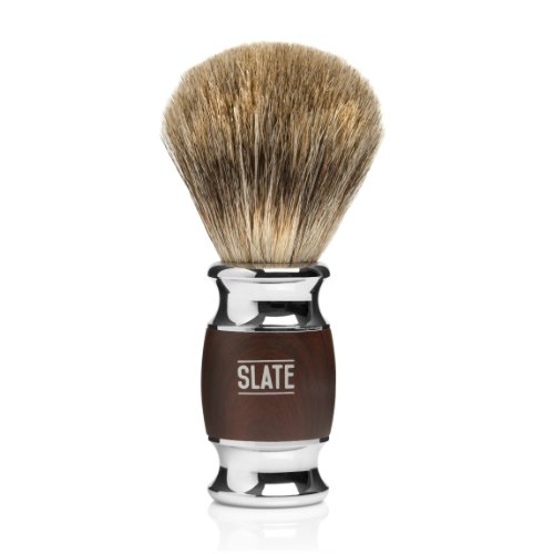 Pure Badger Shaving Brush by Slate Shave- 20m Wide Knot - Faux Rosewood Handle - High Quality Hair and Bristles for the Best in Wet Shaving